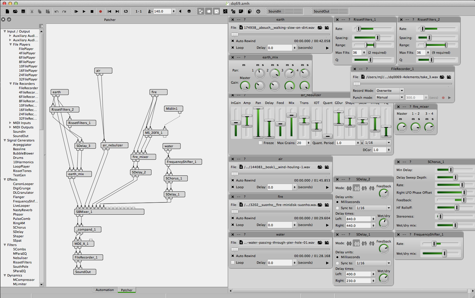 This week’s Disquiet Junto project had us downloading four sound sources from freesound.org, one for each of the classical elements (earth, air, fire and water).